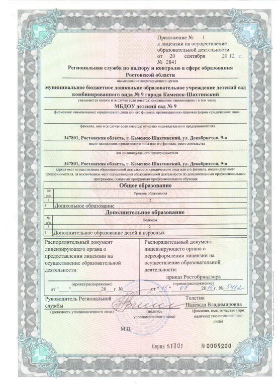 Полное наименование образовательной организации* муниципальное бюджетное дошкольное образовательное учреждение детский сад комбинированного вида №9 города Каменск-Шахтинский